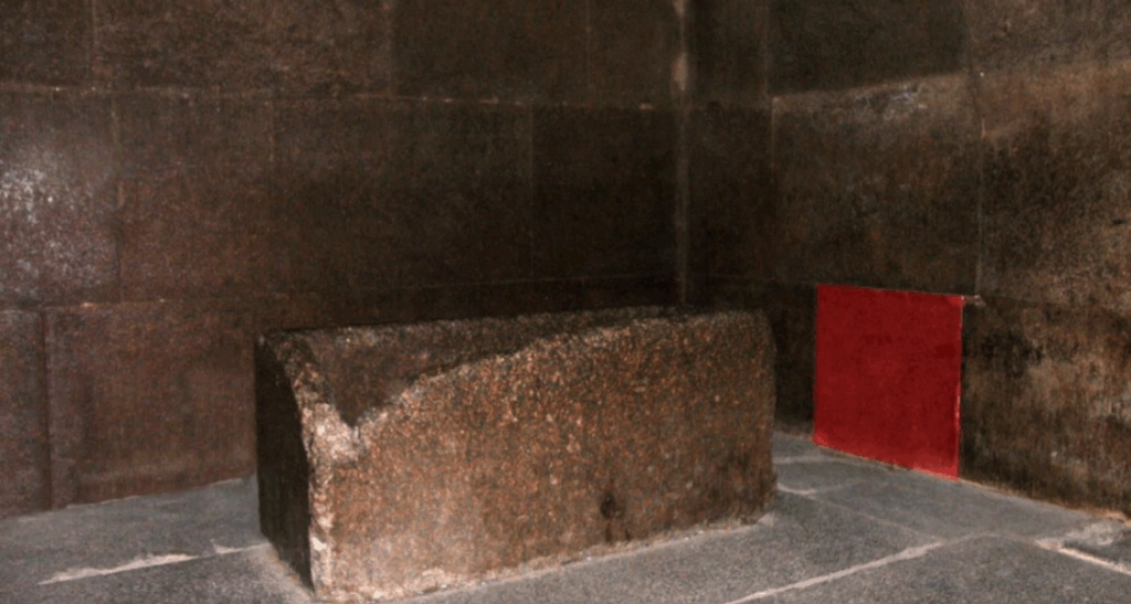 大回廊(grand gallery)が石を運搬するエレベーターのような機能を果たしていたという説に関してはなかなか面白いと思う。また王の間(king’s chamber)に実はもう一つの入り口が隠されているという説もなかなか面白いと思うが、後者に関してはロジックは以下のようになる。従来の説では王の間にある棺桶(のようなもの)は王の間建築の際からずっと置かれていたと考えられきた。というのは王の間の従来の入り口は小さすぎて王の間が完成してからでは入れることができないからだ。しかしジャン=ピエール・ウーダンによると棺桶の近くに棺桶よりも少し大きな石があり、その石は上の石を支えていない。つまり上にある石よりも小さく、要はそれを抜いても構造上何も問題ない、ということになる。だから実は棺桶は王の間建築の際からずっと置かれていたのではなく、王の間が完成したのちに第二の入り口から入れられて、その後に石で閉じたというのだ。ゆえに実はその後ろに秘密の部屋があるかもしれない、ということになる。なんともワクワクする説だ。
